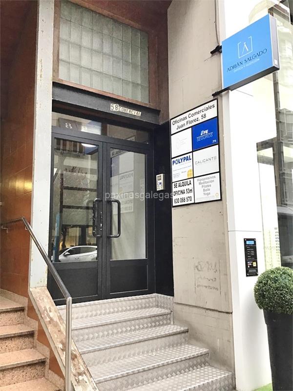 Además, en la parte visual la imagen principal identificativa de Fe Seguros, el visualizador de streetview con la vista de la calle Juan Flórez, 58 Local 3 A - 15004 y sus cercanias.