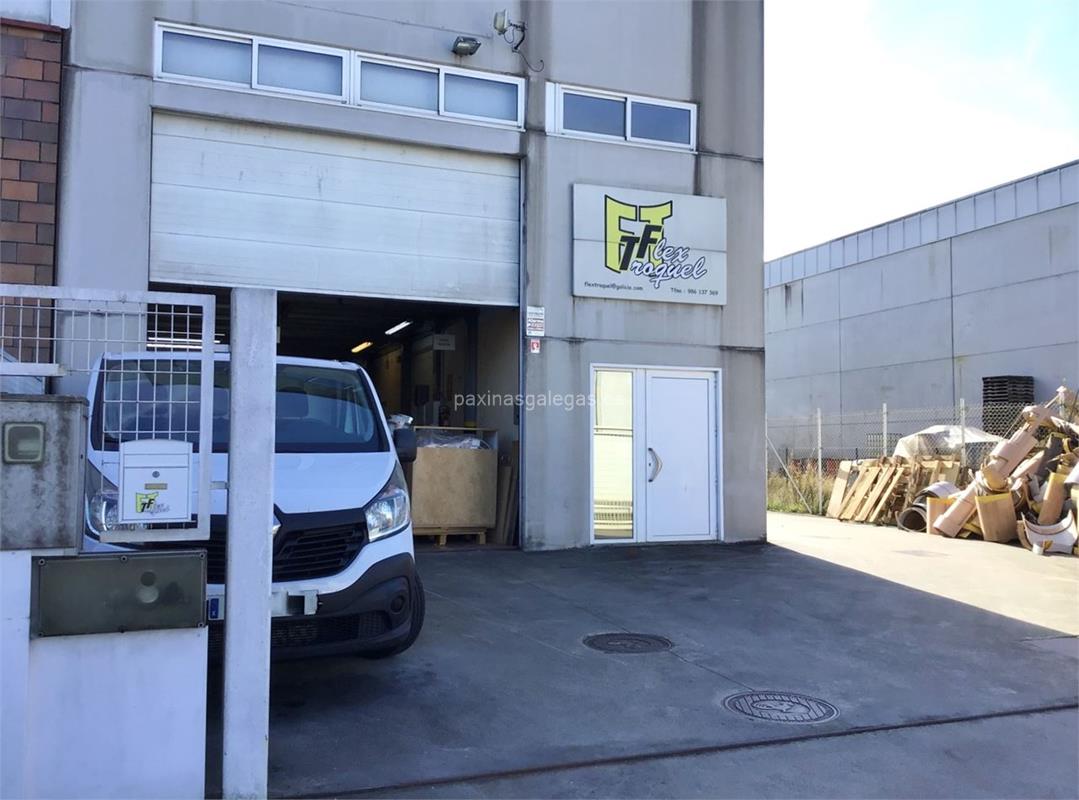 Además, en la parte visual la imagen principal identificativa de Flex Troquel, el visualizador de streetview con la vista de la calle Rúa E - Ons, Parc. 105 - Polígono Industrial A Granxa - 36400 y sus cercanias.