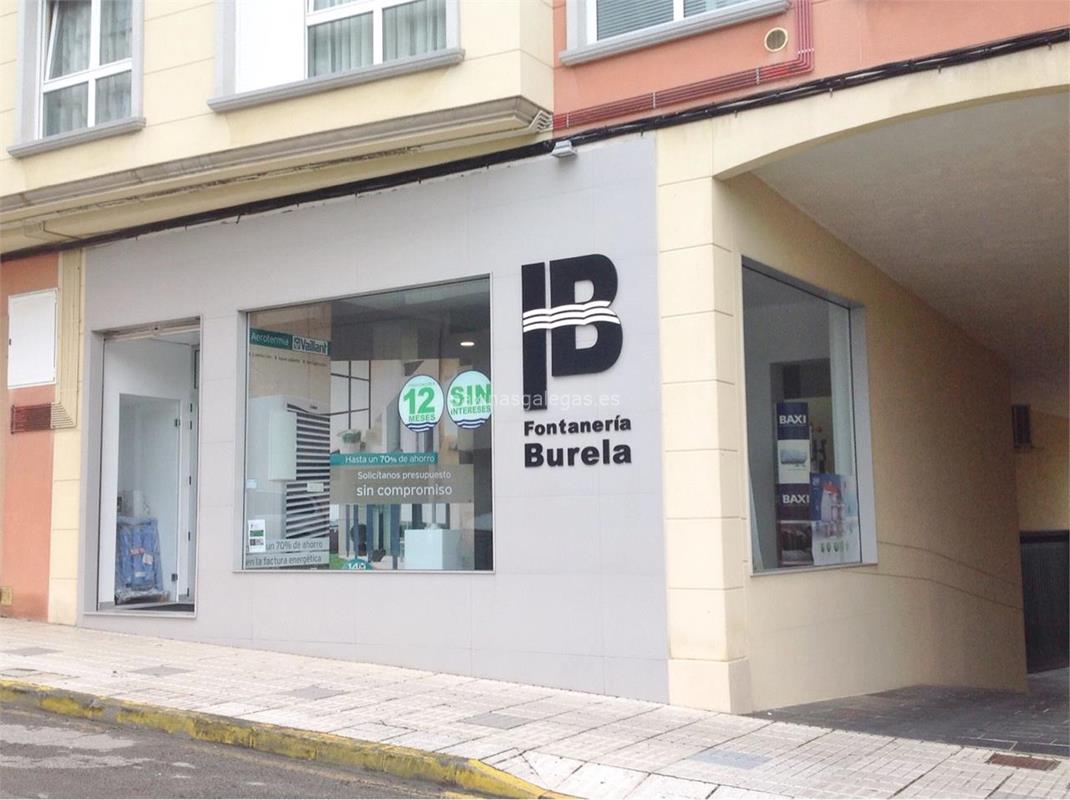 Además, en la parte visual la imagen principal identificativa de Fontanería Burela, el visualizador de streetview con la vista de la calle Rosalía de Castro, 80 Bajo - 27880 y sus cercanias.