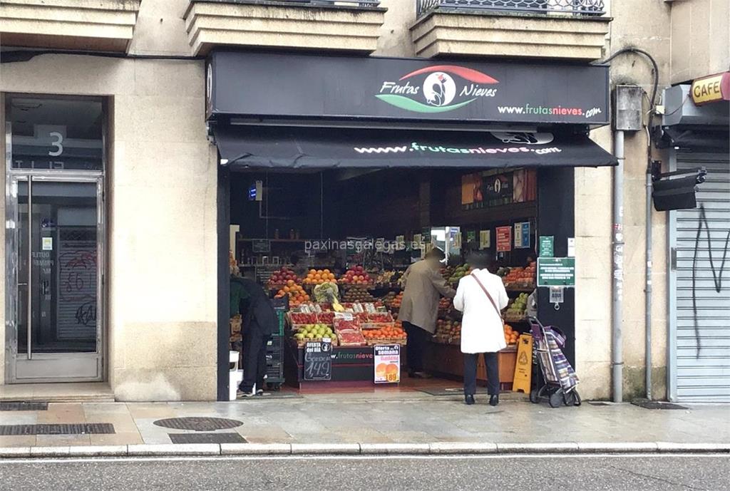 Además, en la parte visual la imagen principal identificativa de Frutas Nieves, el visualizador de streetview con la vista de la calle Pescadores, 3 Bajo - BOUZAS - 36208 y sus cercanias.