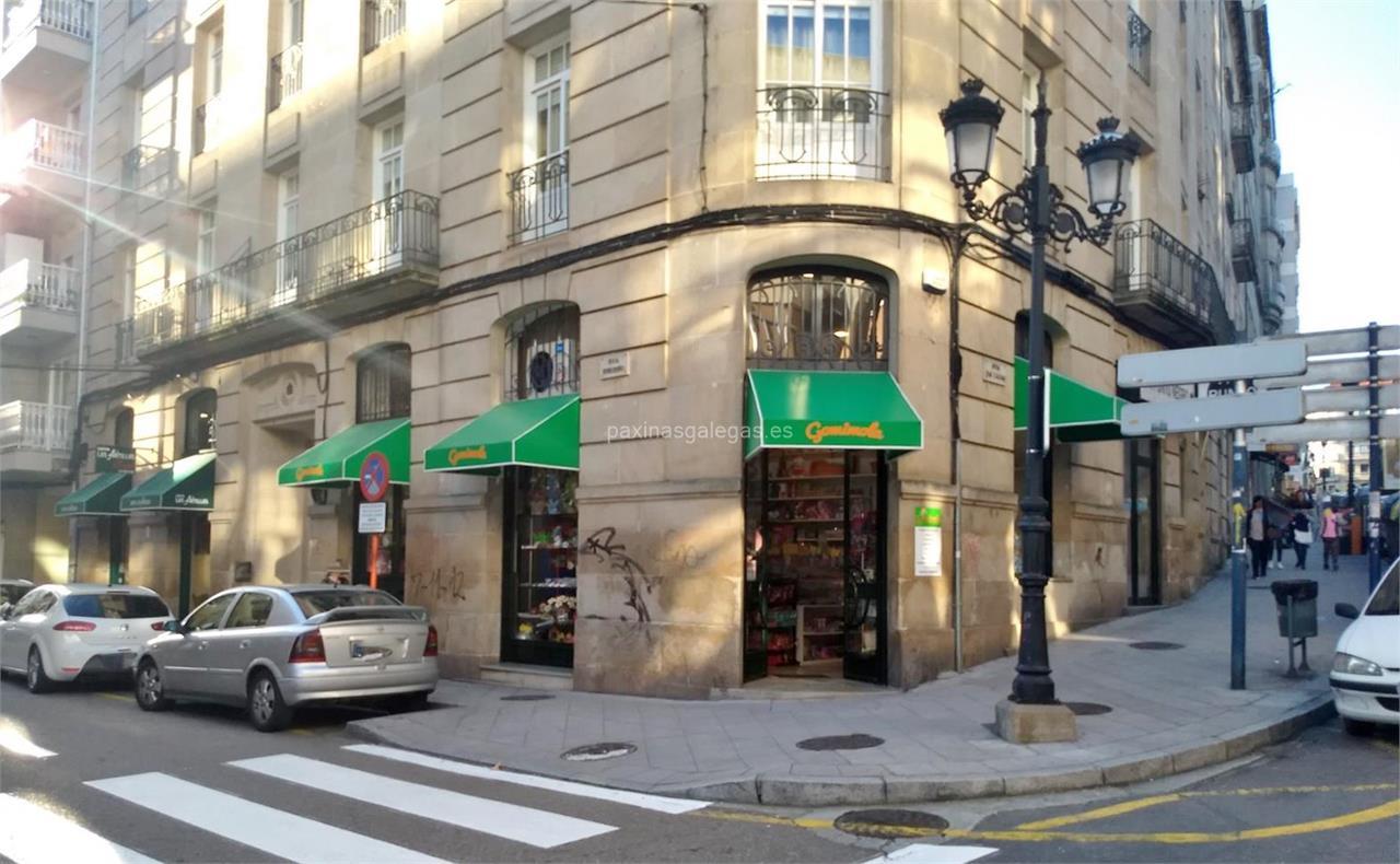 Además, en la parte visual la imagen principal identificativa de Gomimola (Fini), el visualizador de streetview con la vista de la calle Ribeiriño, 2 Bajo 2 - 32001 y sus cercanias.