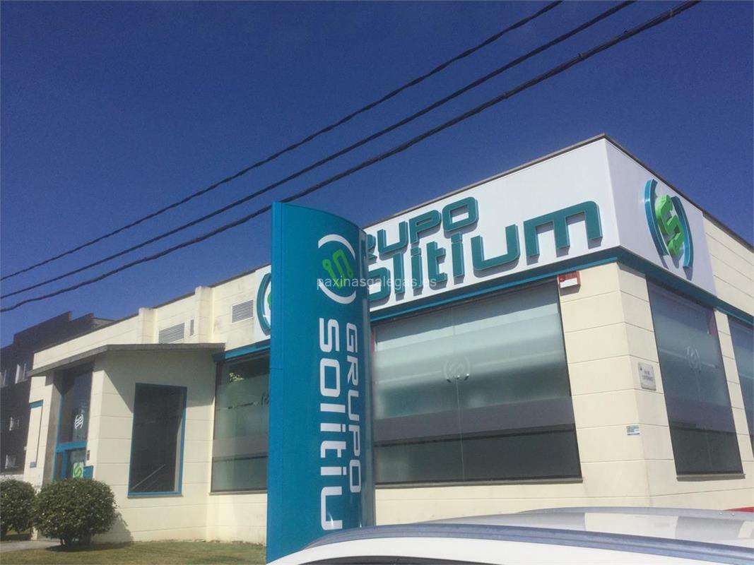 Los datos de contacto: el teléfono de Grupo Solitium (principal) asi como la calle y dirección completa (Vía Pasteur, 32 - Polígono do Tambre - 15890) dentro de Santiago zona (Polígono del Tambre) o la ubicación gps en el mapa (tambien como llegar), enlaces a la pagina web (web empresa).