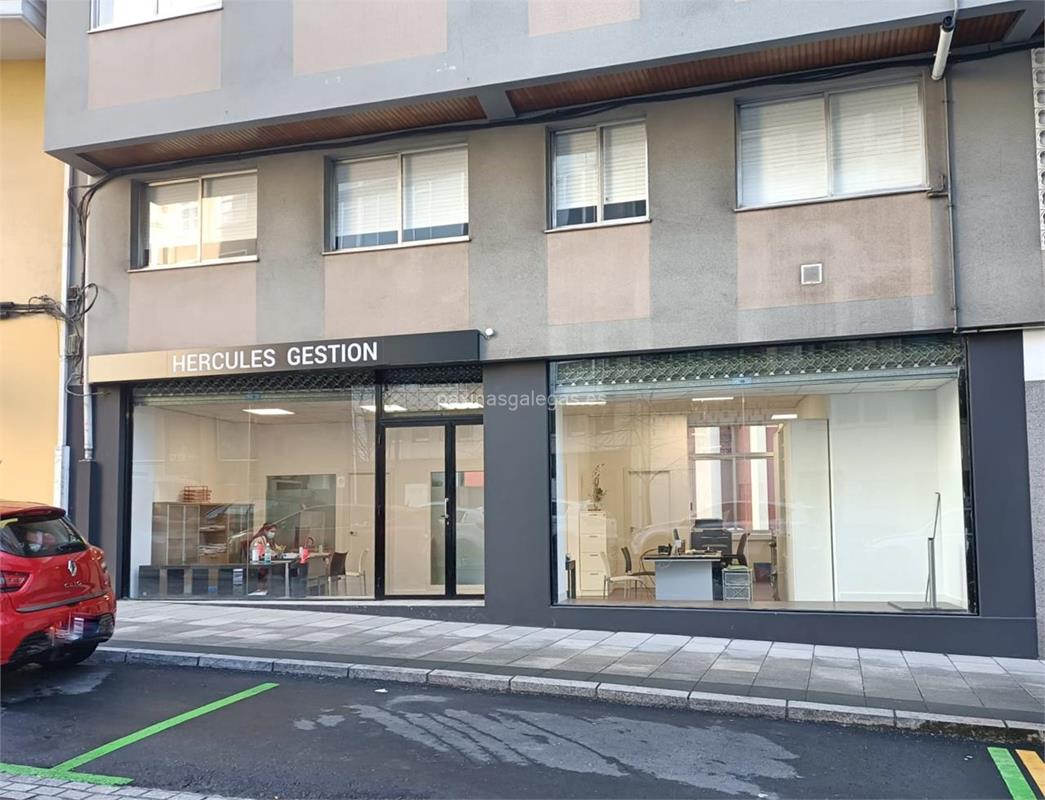 Además, en la parte visual la imagen principal identificativa de Hércules Gestión, el visualizador de streetview con la vista de la calle Castiñeiras de Abajo, 3 Bajo - 15006 y sus cercanias.