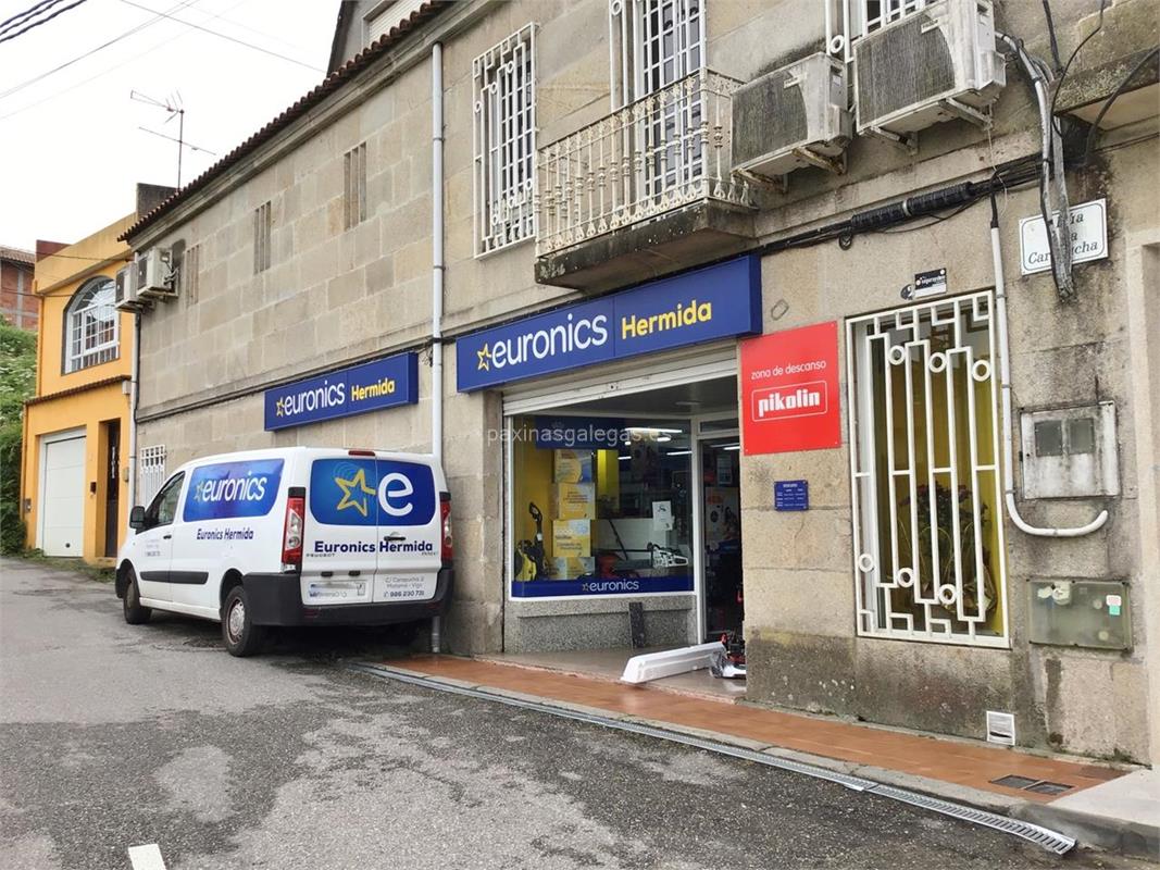 Además, en la parte visual la imagen principal identificativa de Hermida - Euronics, el visualizador de streetview con la vista de la calle Rúa da Carapucha, 2 - MATAMA - 36213 y sus cercanias.