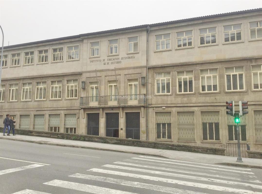 Tambien podrá encontrar el horario de atención apertura. Los datos de contacto: el teléfono de I.E.S. 12 de Outubro (principal) asi como la calle y dirección completa (Avda. de Santiago, 2 - 32001) dentro de Ourense o la ubicación gps en el mapa (tambien como llegar), enlaces a la pagina web (web empresa, facebook) y el correo electrónico (email) para ponerse en contacto can I.E.S. 12 de Outubro a través de email.