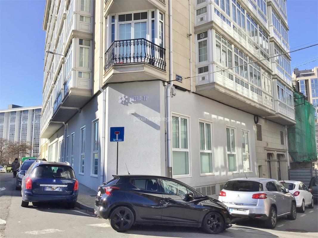 Tambien podrá encontrar el horario de atención apertura. Los datos de contacto: el teléfono de Intra-Tp (principal) asi como la calle y dirección completa (Joaquín Galiacho, 10 Bajo - 15009) dentro de A Coruña zona (Castrillon) o la ubicación gps en el mapa (tambien como llegar), enlaces a la pagina web (web empresa) y el correo electrónico (email) para ponerse en contacto can Intra-Tp a través de email.