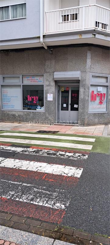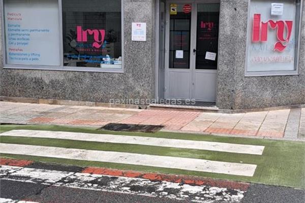 Además, en la parte visual la imagen principal identificativa de Irynails, el visualizador de streetview con la vista de la calle Arzobispo Gelmírez, 32 - 36600 y sus cercanias.