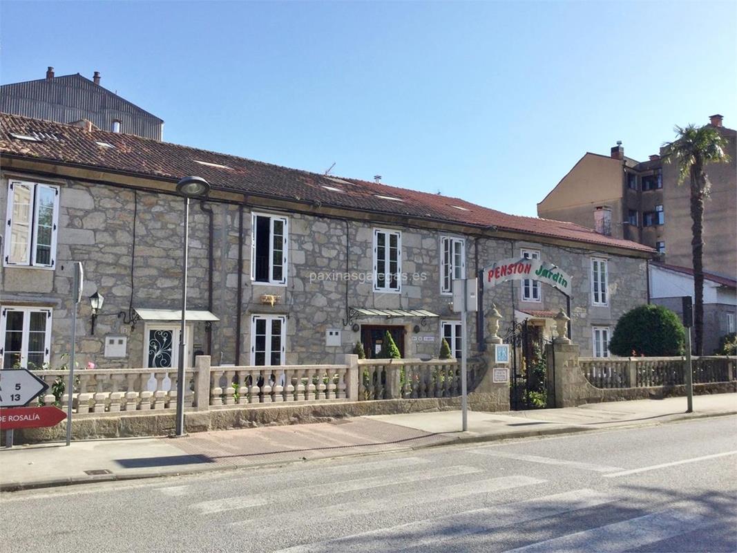 Casa con encanto del siglo XVIII, situada frente al jardín botánico de Padrón. Habitaciones con baño, televisión, calefacción y terraza. Garaje para bicicletas. Pensión Jardín es poseedora de 3 estrellas de plata y galardonada con el premio Dolmen 2010, por su calidad y servicio. Más de 67 años en el sector (desde 1958).