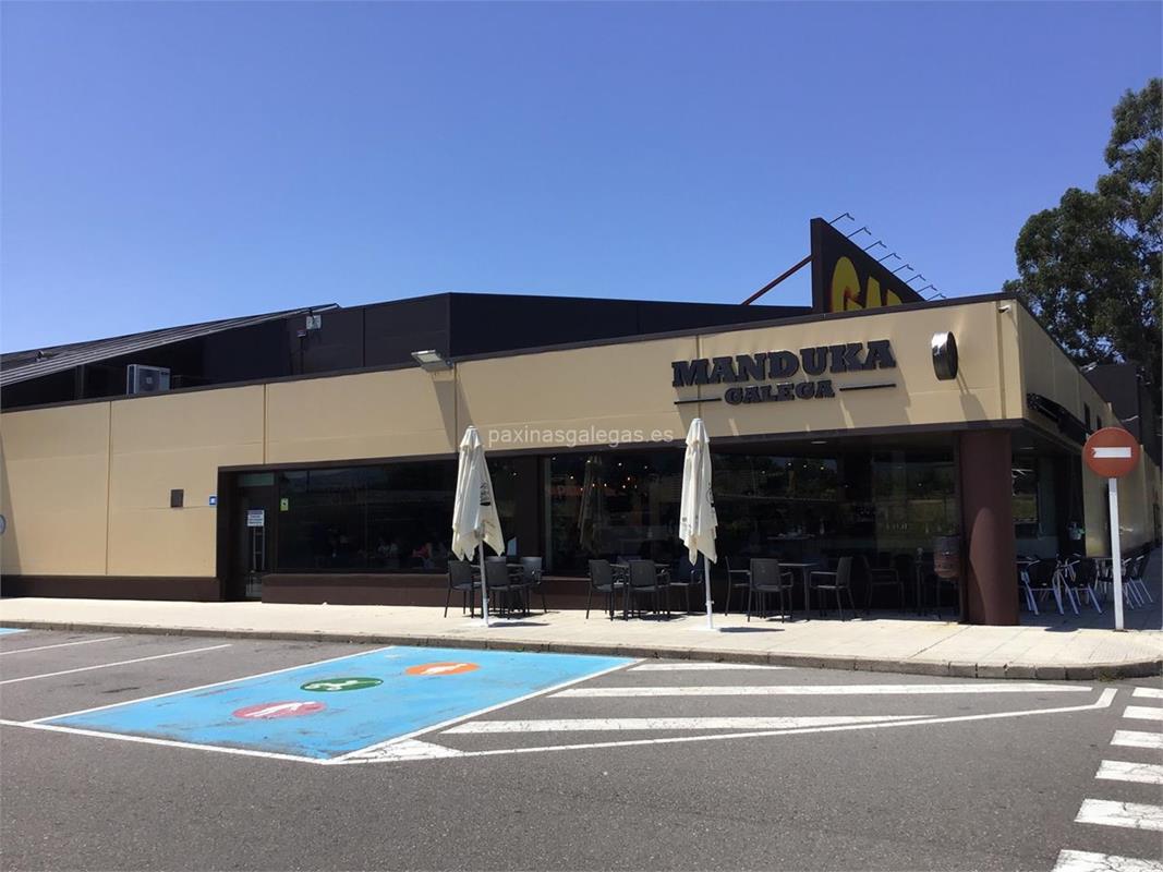 Además, en la parte visual la imagen principal identificativa de Manduka Galega, el visualizador de streetview con la vista de la calle Regueiro, s/n (C.Cial. Gadis Hiper) - 36711 y sus cercanias.