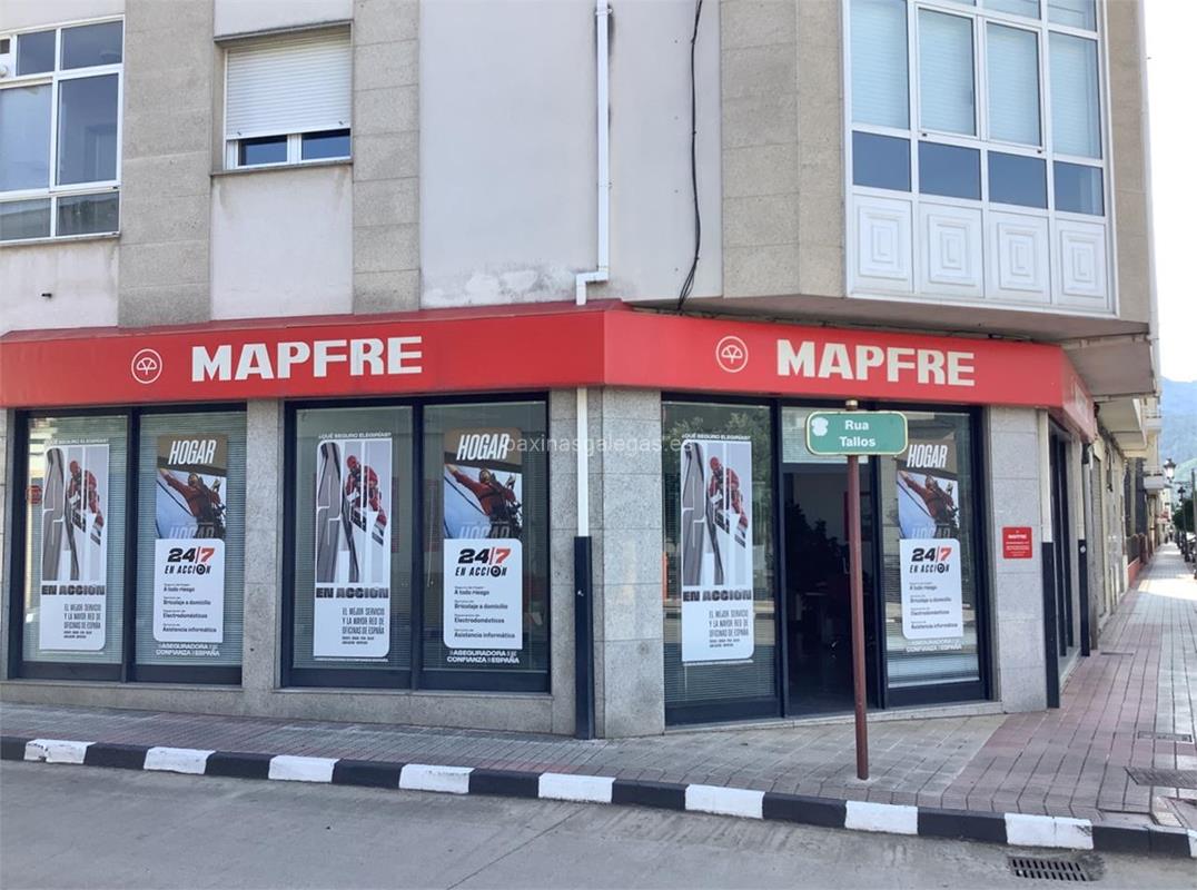 Además, en la parte visual la imagen principal identificativa de Mapfre, el visualizador de streetview con la vista de la calle Tallos, 2 Bajo - 27320 y sus cercanias.