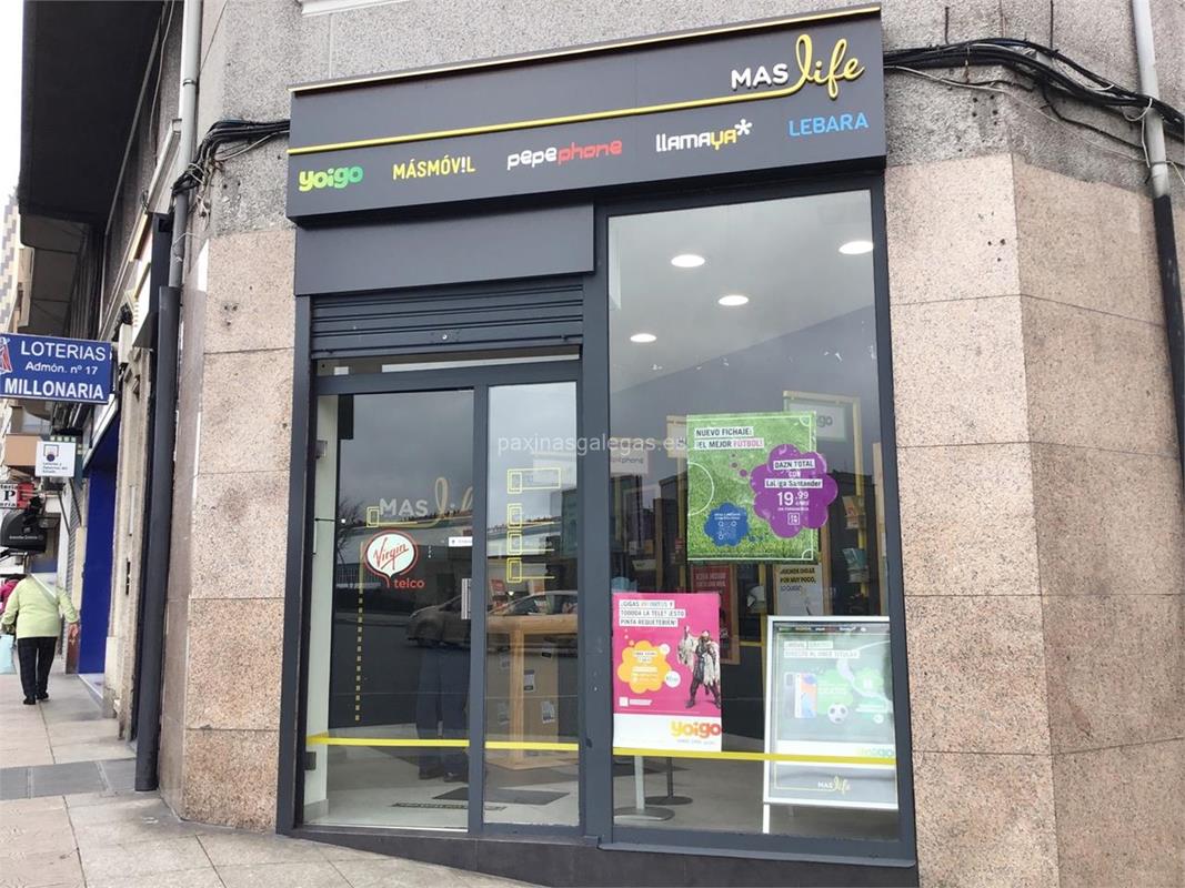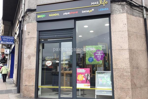 Tienda Maslife ubicada en Ronda de Outeiro, 120 Bajo (A Coruña). Servicio de telefonía fija y móvil, internet, fibra y ADSL. Somos distribuidores oficiales de MásMóvil, Yoigo, LlamaYa, Lebara y Pepephone. Ofrecemos a nuestros clientes servicio de post-venta y reparación de teléfonos.