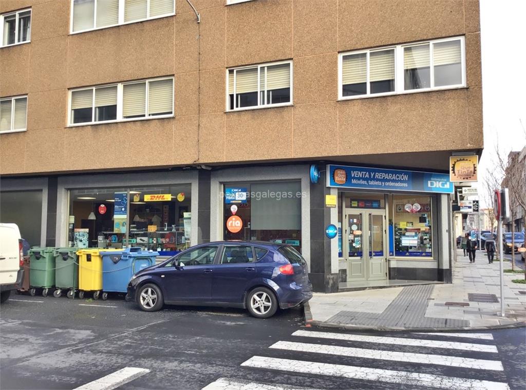 Además, en la parte visual la imagen principal identificativa de Másquetinta, el visualizador de streetview con la vista de la calle Luis Calvo, 6 - 15100 y sus cercanias.
