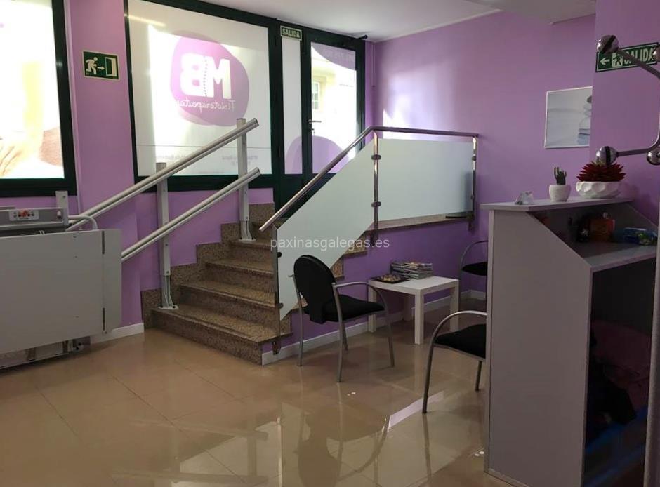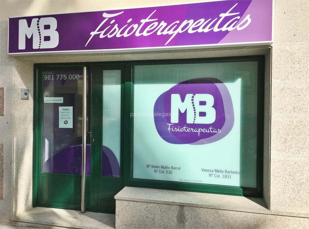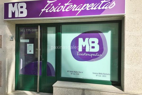 Además, en la parte visual se muestra el logotipo corporativo, la imagen principal identificativa de MB Fisioterapeutas, el visualizador de streetview con la vista de la calle Alexandre Bóveda, 5 Bajo B - 15300 y sus cercanias. 7 imágenes adicionales relativas a los productos, trabajos, servicios de MB Fisioterapeutas.