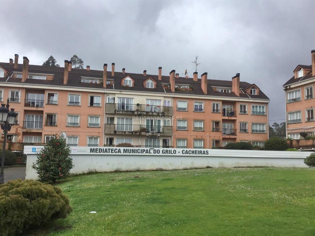 Además, en la parte visual la imagen principal identificativa de Mediateca do Grilo, el visualizador de streetview con la vista de la calle Trva. Cacheiras, 18 - Cacheiras - 15883 y sus cercanias.