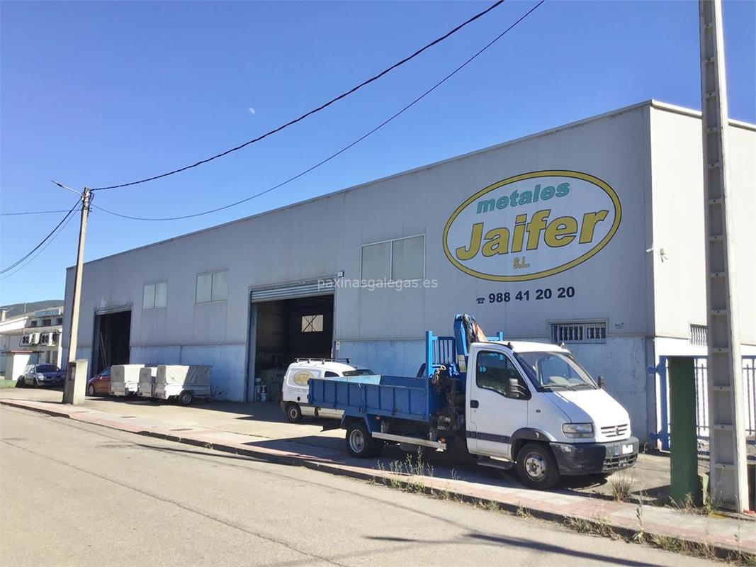 Además, en la parte visual la imagen principal identificativa de Metales Jaifer, el visualizador de streetview con la vista de la calle Polígono Industrial de Pazos, Parc. B 2D - 32614 y sus cercanias.