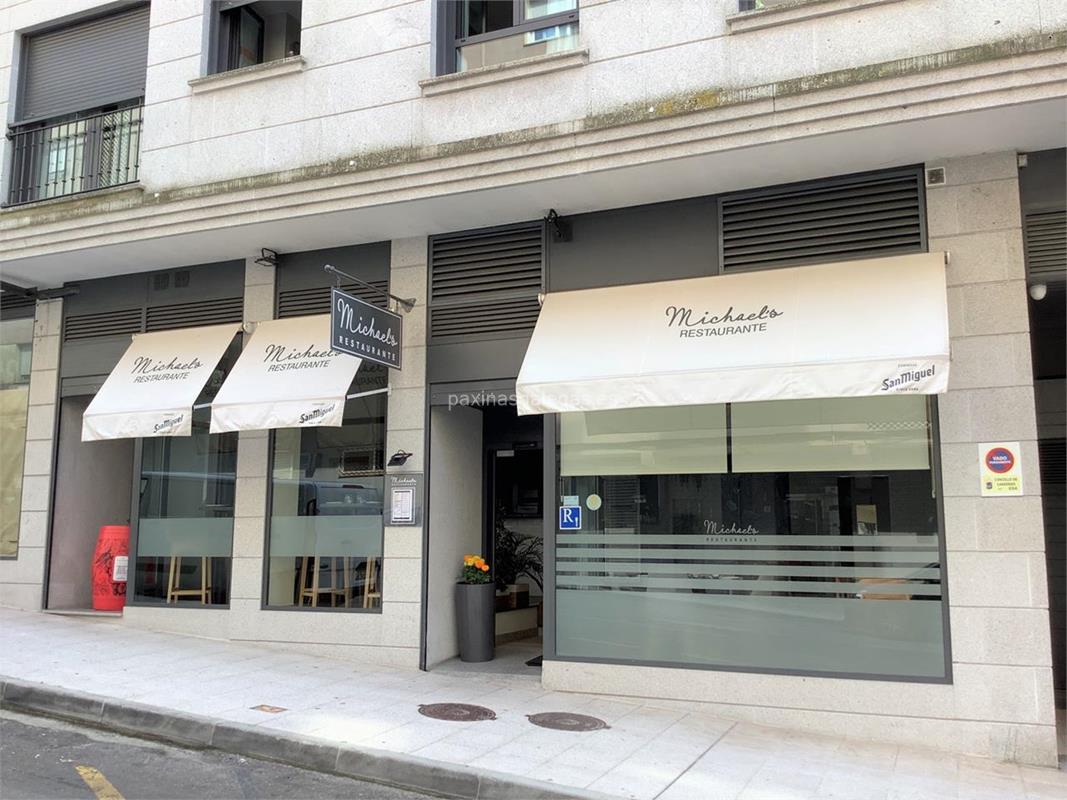 Además, en la parte visual la imagen principal identificativa de Michael's, el visualizador de streetview con la vista de la calle Cesteiros, 4 - 36960 y sus cercanias.