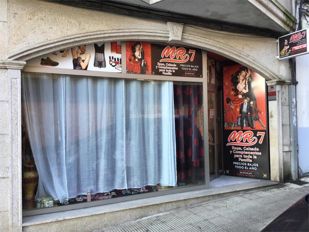 Además, en la parte visual la imagen principal identificativa de MR7 Moda, el visualizador de streetview con la vista de la calle Victoriano Pérez Vidal, 29 Bajo - 36470 y sus cercanias.