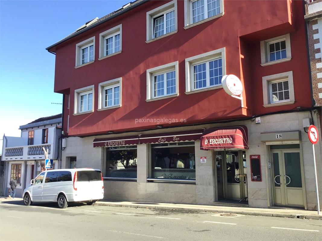 Además, en la parte visual la imagen principal identificativa de O Encontro, el visualizador de streetview con la vista de la calle Avda. de Caión, 18 - 15145 y sus cercanias.