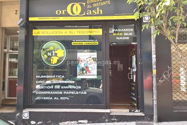 Además, en la parte visual la imagen principal identificativa de Orocash, el visualizador de streetview con la vista de la calle Santiago de Chile, 2 Bajo - 15701 y sus cercanias.