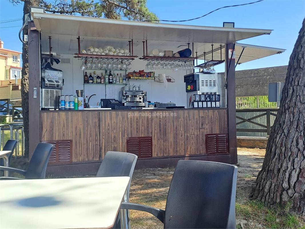 Cafés, tés e infusiones, refrescos, zumos, cervezas, vinos, copas y licores, etc. Raciones, salchipapas, patatas delux, finguers de pollo con patatas, pasta, pulpo, raciones. Abre en temporada, normalmente de mayo a septiembre.