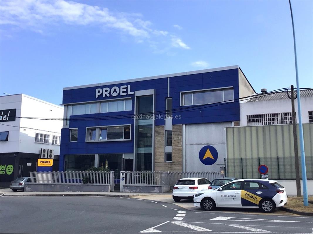 Además, en la parte visual la imagen principal identificativa de Proel, el visualizador de streetview con la vista de la calle Gutenberg, 24 - Polígono A Grela - 15008 y sus cercanias.