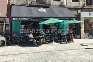 Además, en la parte visual la imagen principal identificativa de Que Churros!, el visualizador de streetview con la vista de la calle Rúa de Urzáiz, 193 - 36205 y sus cercanias.