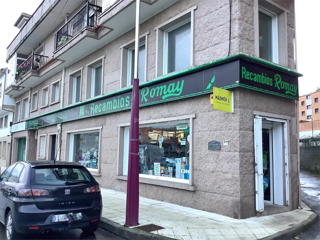 Además, en la parte visual la imagen principal identificativa de Recambios Automóvil Romay, el visualizador de streetview con la vista de la calle Avda. Rosalía de Castro, 24 - BARRANTES - 36636 y sus cercanias.