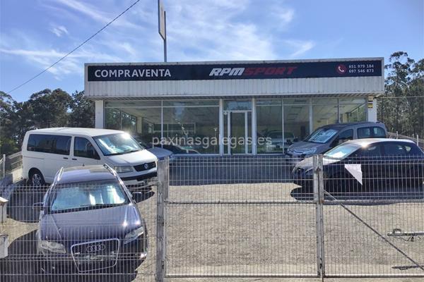 Instalaciones de la empresa Rpm Sport en la parroquia de Areas de Tui, dedicadas a la compra venta de vehículos de ocasión. Comercialización de coches usados. Abre por las tardes, de lunes a viernes.