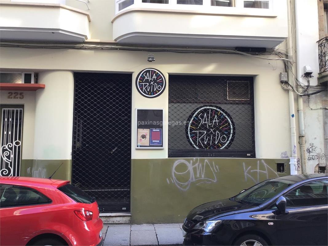 Además, en la parte visual la imagen principal identificativa de Sala Ruído, el visualizador de streetview con la vista de la calle Real, 223 bajo - 15401 y sus cercanias.