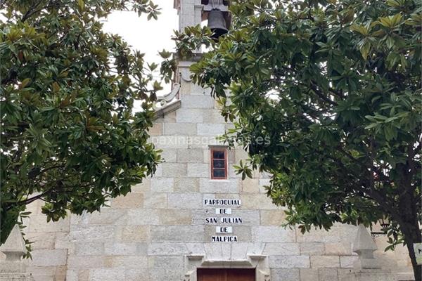 Los datos de contacto: el teléfono de San Xulián asi como la calle y dirección completa (Iglesia, s/n - 15113) dentro de Malpica o la ubicación gps en el mapa (tambien como llegar).