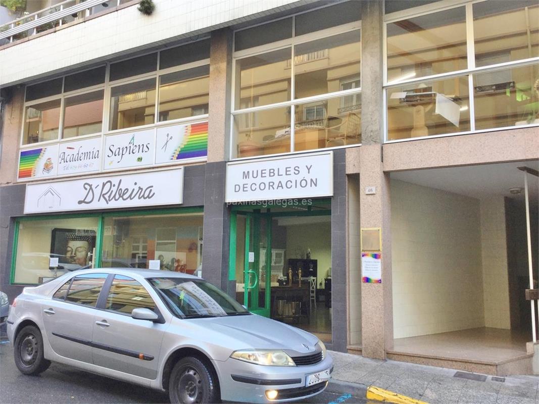 Tambien podrá encontrar el horario de atención apertura. Los datos de contacto: el teléfono de Sapiens (principal) asi como la calle y dirección completa (Avda. Rosalía de Castro, 46 Entp. B - 15960) dentro de Ribeira o la ubicación gps en el mapa (tambien como llegar), enlaces a la pagina web (instagram, facebook) y el correo electrónico (email) para ponerse en contacto can Sapiens a través de email.