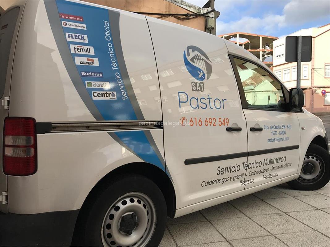 Tambien podrá encontrar el horario de atención apertura. Los datos de contacto: el teléfono de SAT Pastor (principal) asi como la calle y dirección completa (Estr. de Castela, 610 Bajo - 15572) dentro de Narón o la ubicación gps en el mapa (tambien como llegar), enlaces a la pagina web (facebook) y el correo electrónico (email) para ponerse en contacto can SAT Pastor a través de email.