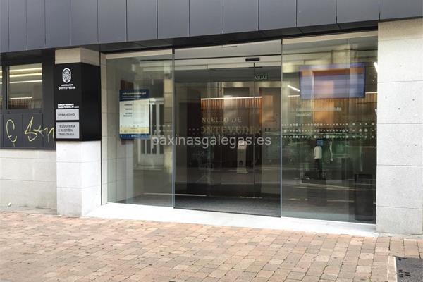 Además, en la parte visual la imagen principal identificativa de Servizo Municipal de Xestión Tributaria, el visualizador de streetview con la vista de la calle Rúa dos Ferreiros, 28 - 36002 y sus cercanias.