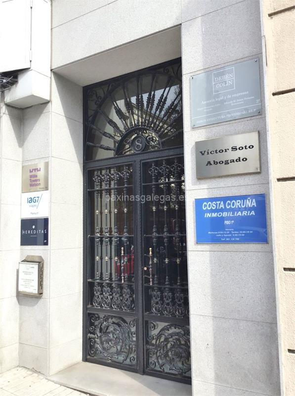 Tambien podrá encontrar el horario de atención apertura. Los datos de contacto: el teléfono de Soto Amado (principal) asi como la calle y dirección completa (Menéndez Pelayo, 8 1º - 15005) dentro de A Coruña zona (Plaza de Vigo, ) o la ubicación gps en el mapa (tambien como llegar).