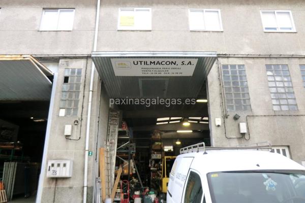Además, en la parte visual la imagen principal identificativa de Utilmacon, el visualizador de streetview con la vista de la calle Prolongación Juan de la Cierva, 2 - Polígono A Grela - 15008 y sus cercanias.