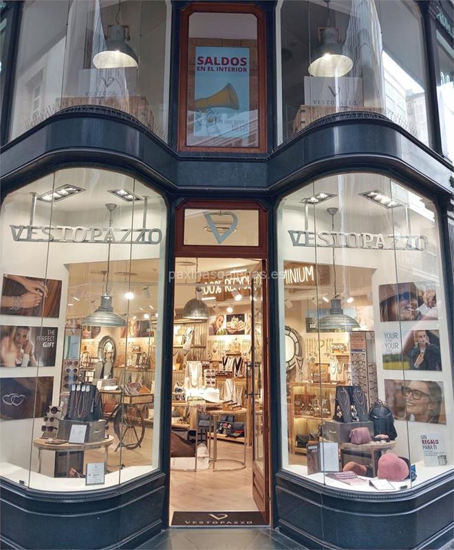 Tambien podrá encontrar el horario de atención apertura. Los datos de contacto: el teléfono de Vestopazzo (principal) asi como la calle y dirección completa (Real, 70 - 15003) dentro de A Coruña zona (Obelisco) o la ubicación gps en el mapa (tambien como llegar), enlaces a la pagina web (web empresa, instagram).