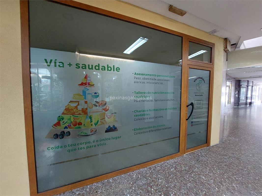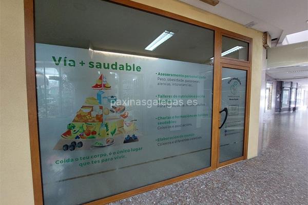 Además, en la parte visual la imagen principal identificativa de Via+Saudable, el visualizador de streetview con la vista de la calle Méndez Núñez, 24 - (Gal. Colón) - 36900 y sus cercanias.