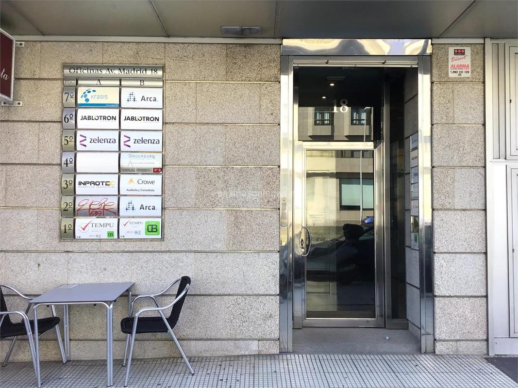 Además, en la parte visual la imagen principal identificativa de Xunzal, el visualizador de streetview con la vista de la calle Avda. de Madrid, 18 4ºB - 36214 y sus cercanias.